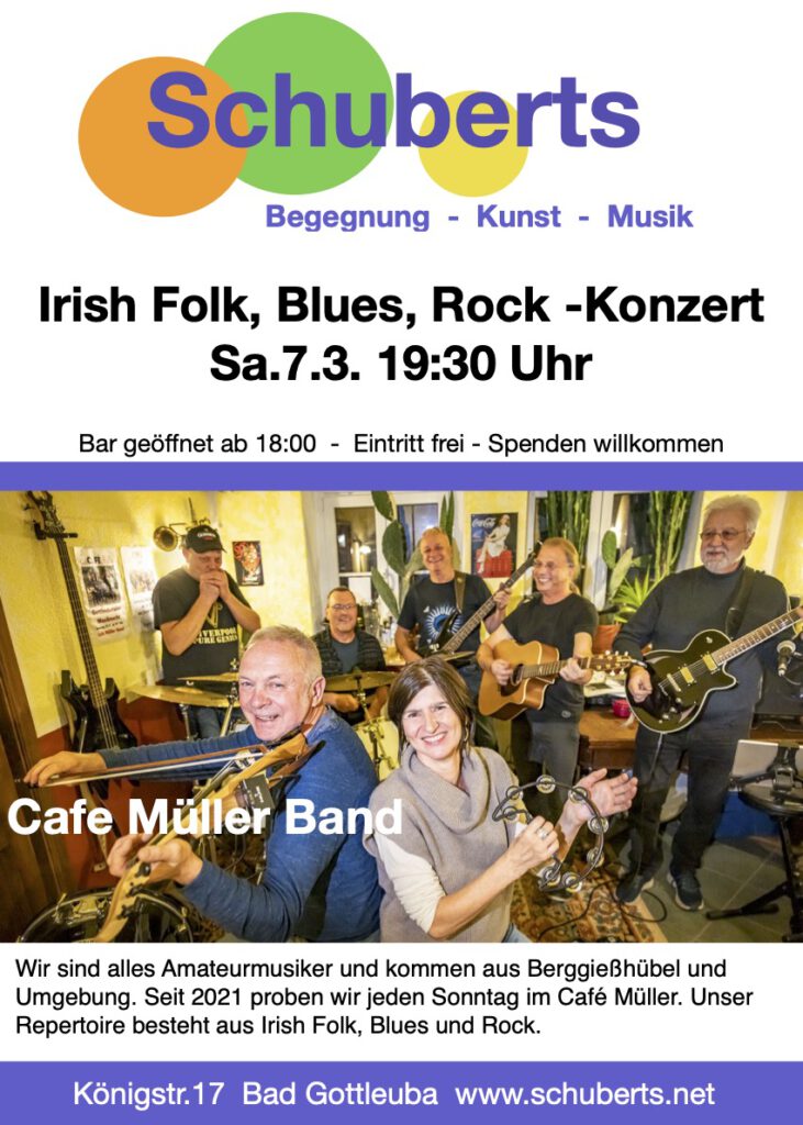 Wir freuen uns, die Cafè Müller Band aus Berggießhübel erstmalig bei einem Auftritt im Schuberts zu erleben.
